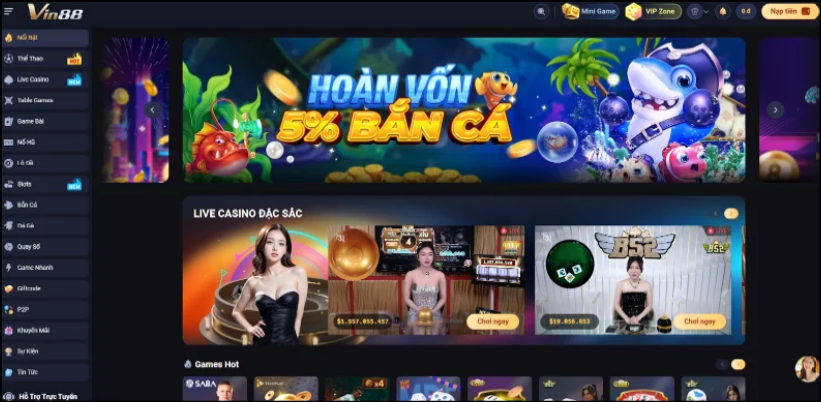 Casino trực tuyến – Không khí Las Vegas thu nhỏ: Baccarat, Roulette, Poker, Xóc Đĩa – tất cả đều được stream HD với dealer thật, thao tác chuẩn từng mili-giây. bongdawap nhận định Vin88 là “sảnh casino có trải nghiệm trực tiếp chân thực nhất năm nay”.